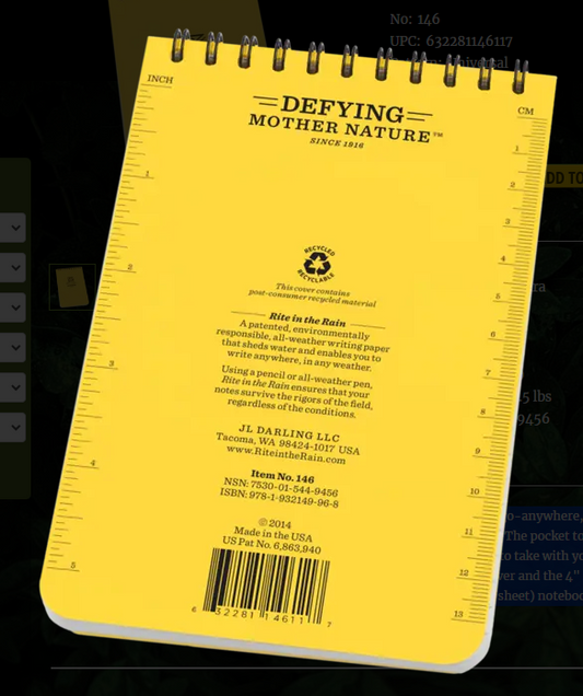 146 4x6 Yellow Top Spiral Pocket Rite in the Rain Notebook 4" x 6" (146)