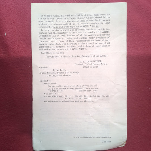 BOOK: ARMY INFORMATION ONE NATION-ONE MISSION-ONE ARMY 11 FEBRUARY 1960 (box10)