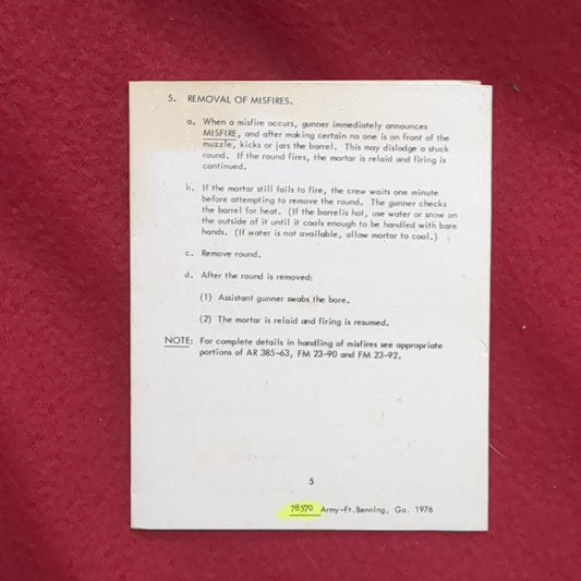 BOOK: MORTAR SAFETY OFFICER/NCO CHECK LIST 1976 (box10)