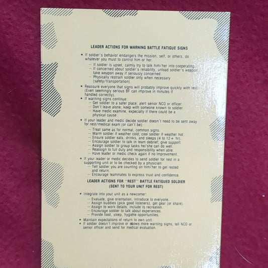 BOOK: BATTLE FATIGUE WARNING SIGNS: LEADER ACTIONS JUNE 1994 (box10)