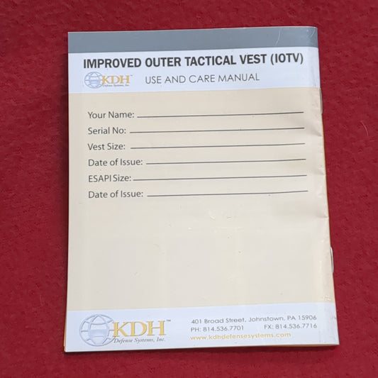 BOOK: IMPROVED OUTER TACTICAL VEST (I0TV) USE AND CARE MANUAL (box10)