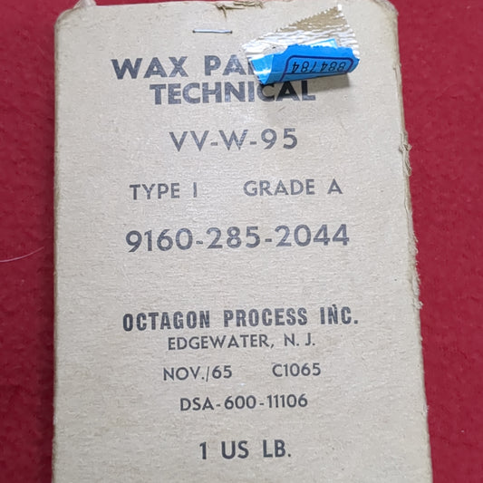 Vintage Nov. 1965 Wax Paraffin Technical VV-W-95 Grade A Type 1 (CL28)