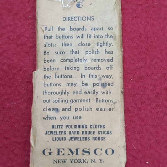 Vintage 1922 Gemsco Button Board for Cleaning & Polishing Uniforms (CL23)