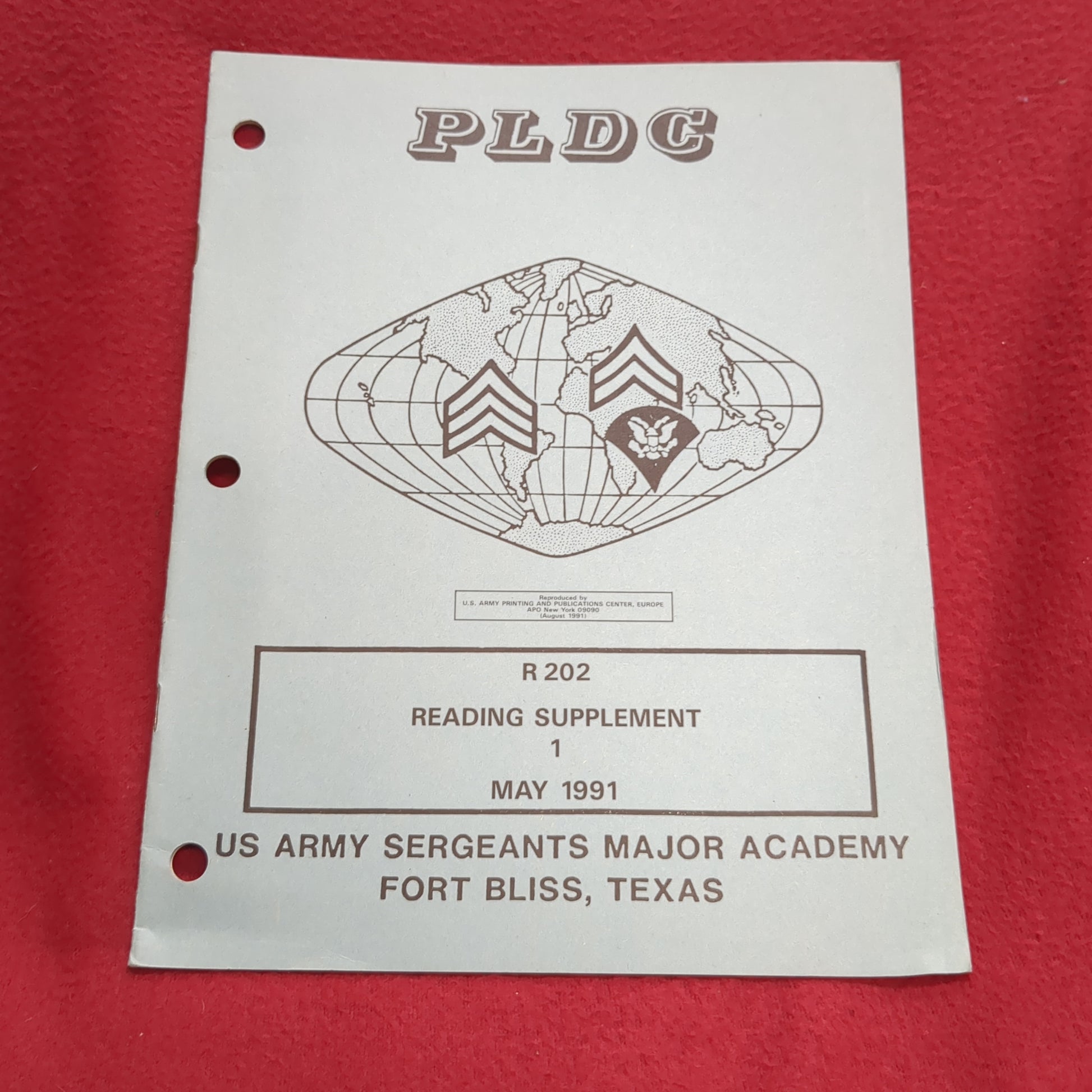 BOOK - US ARMY SERGEANTS MAJOR ACADEMY (FORT BLISS, TEXAS) PLDC: R202: READING SUPPLEMENT ONE: CONDUCTING MAINTENANCE:MAY 1991(BOX 29)