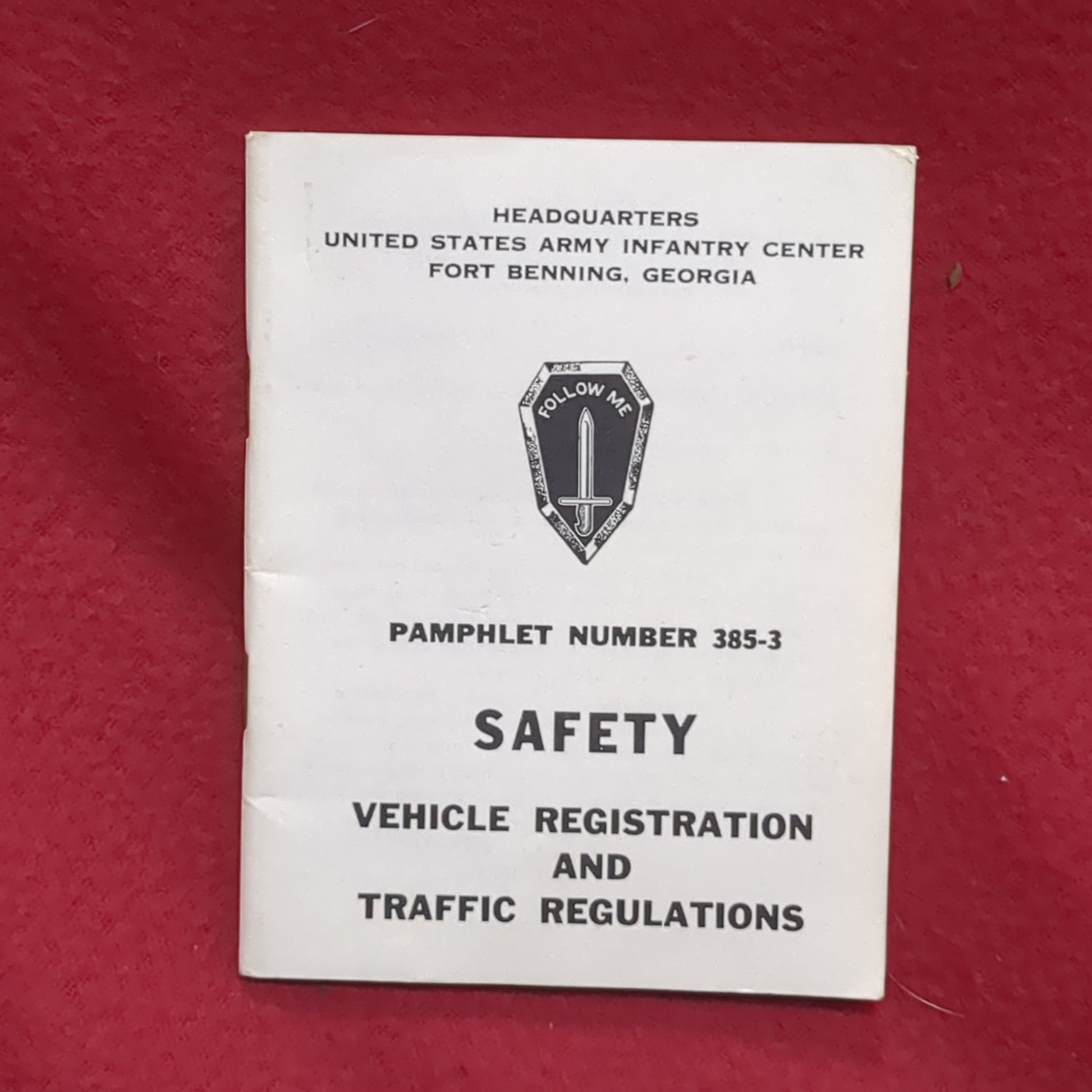BOOK: PAMPHLET NUMBER 385-3 SAFETT VEHICLE REGISTRATION AND TRAFFIC REGULATIONS 15 NOVEMBER 1961 (box10)