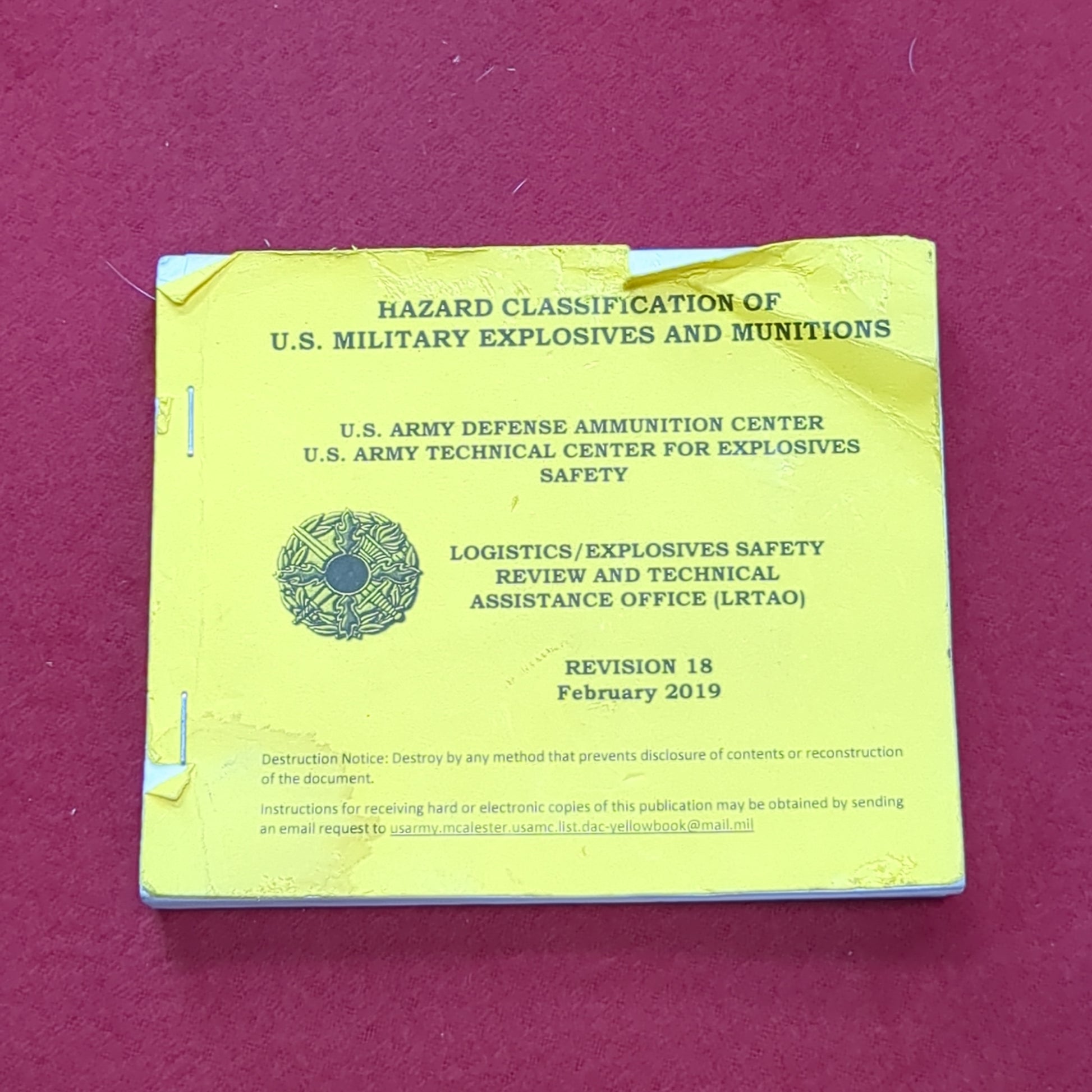 BOOK: HAZARD CLASSIFICATION OF U.S. MILITARY EXPLOSIVES AND MULITIONS FEBRUARY 2019 REVISION 18(box6)