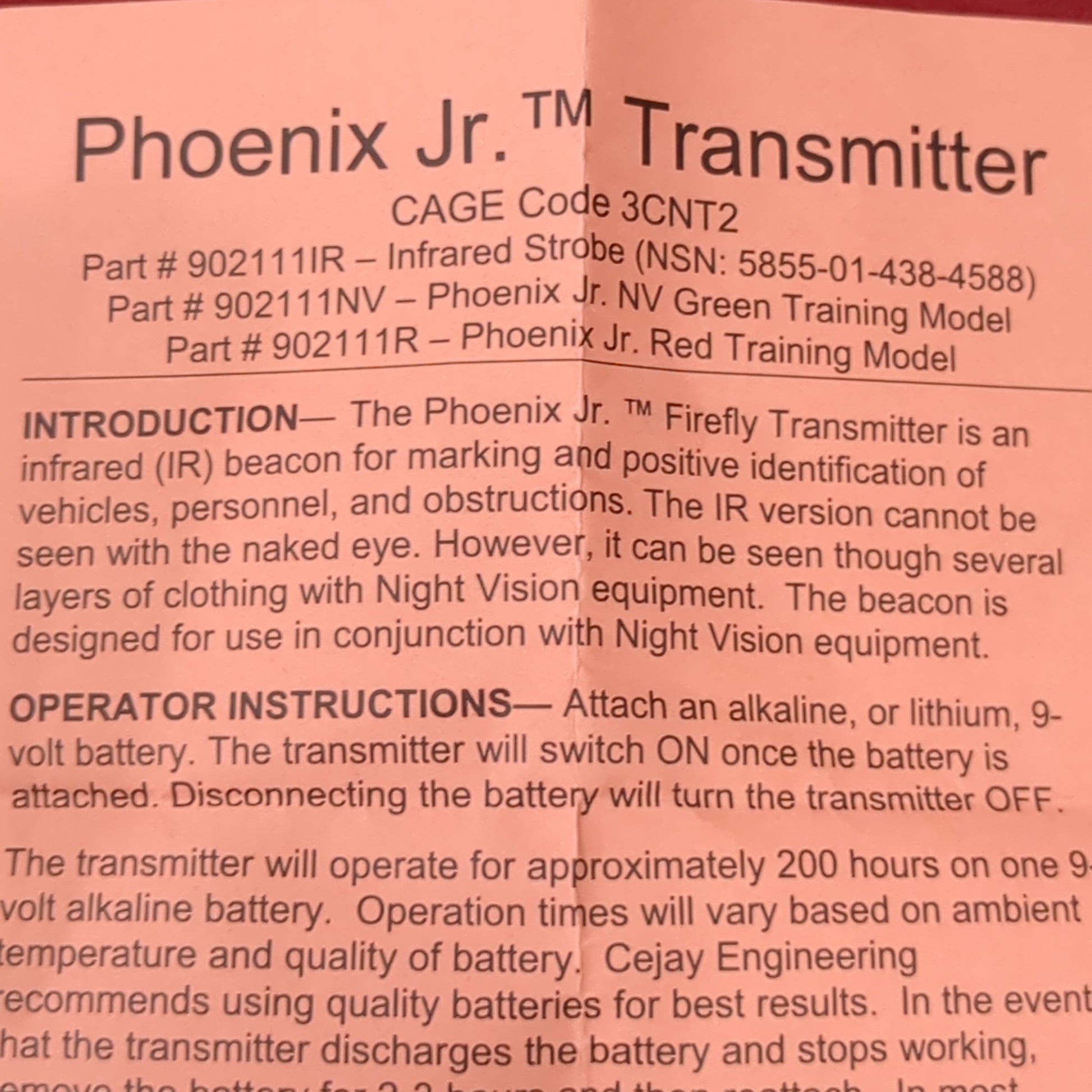 US army cejay phoenix jr, nvg infrared, ir night vision strobe beacon used *J09 ab02-enu15*