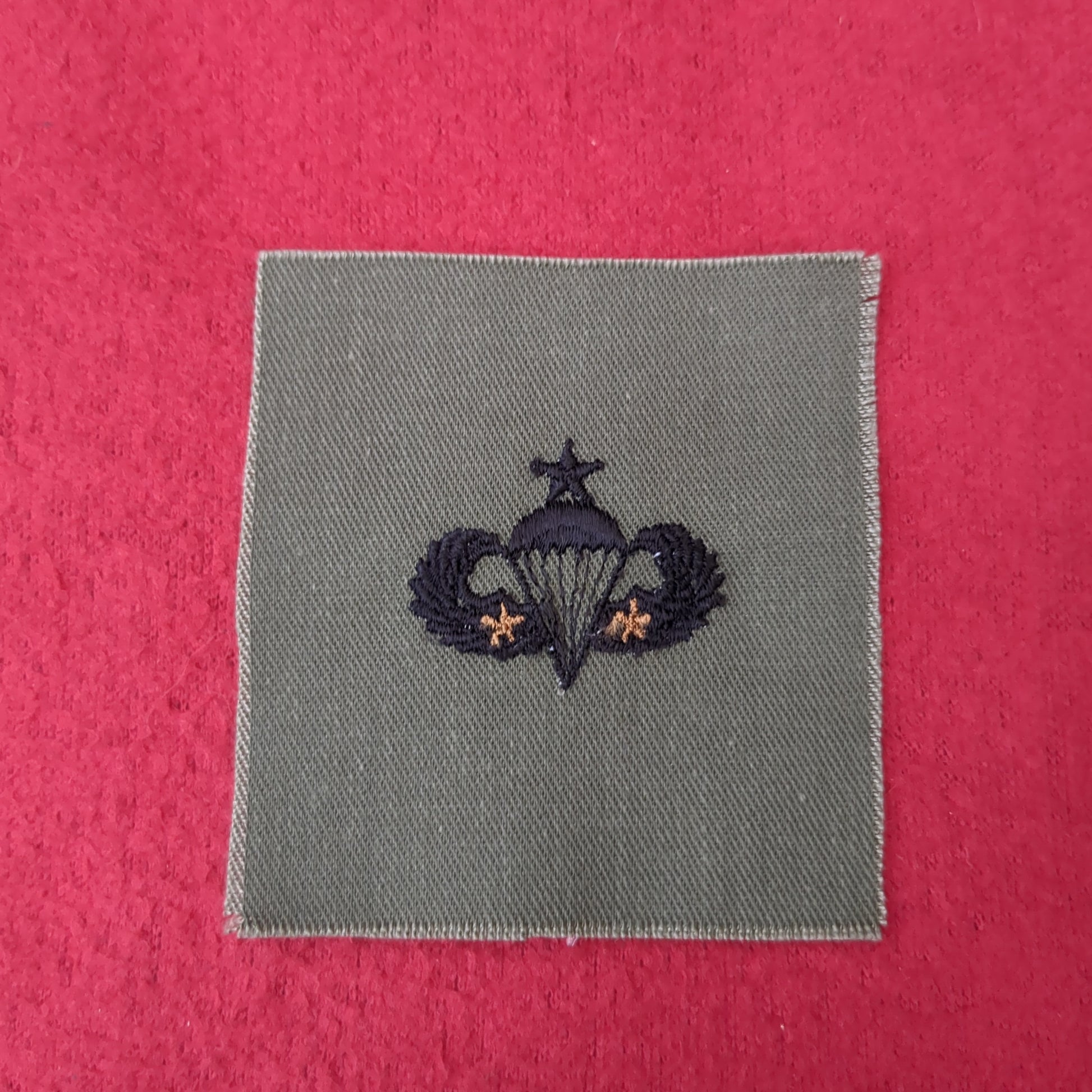 US Army SENIOR JUMP WINGS 2 COMBAT STAR Badge Subdued OD Black Sew On (bu05-cjw5)