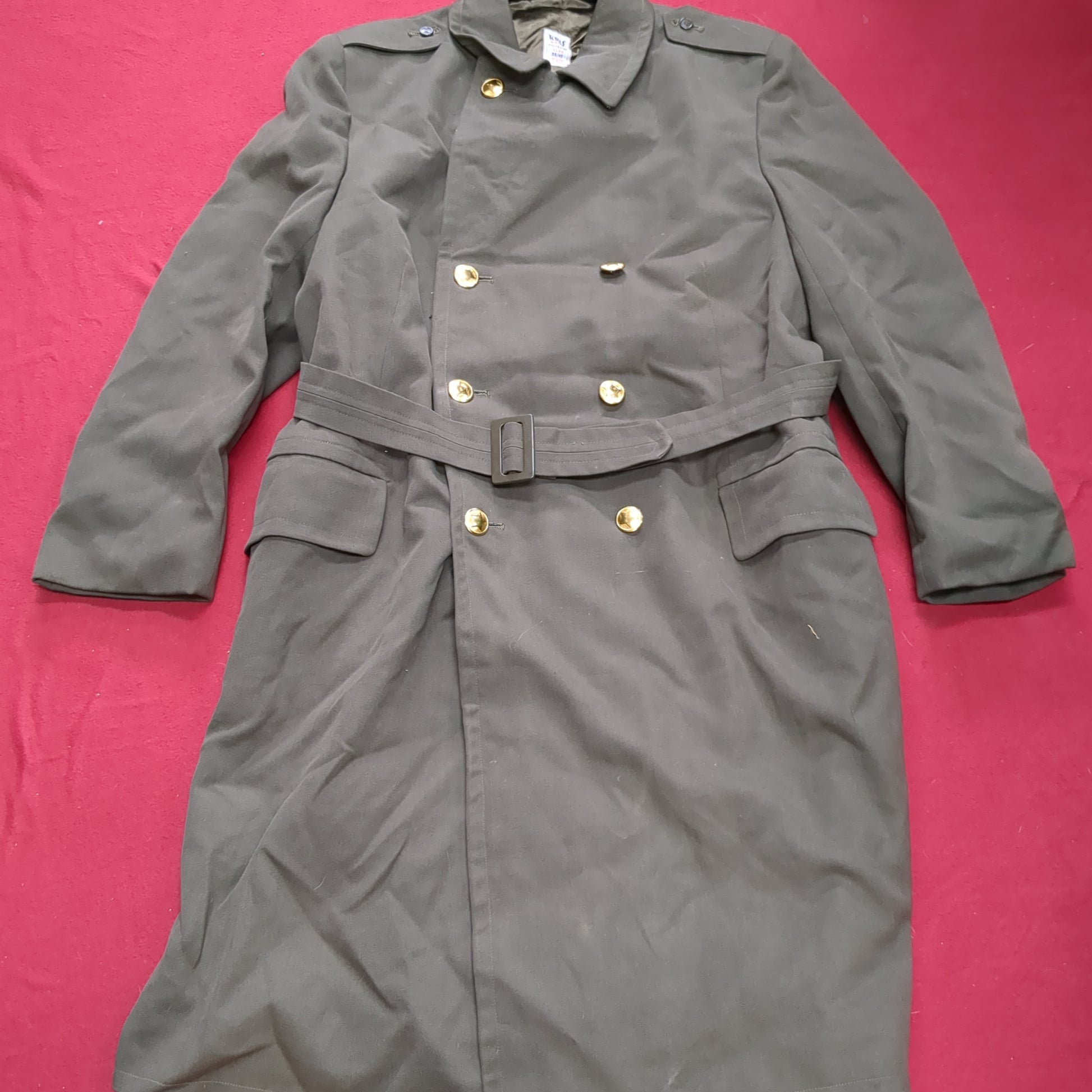 Vintage Czech CZECHOSLOVAKIA Military Trench Coat Overcoat Kras Odevy Brno (j1 (ab13-j)