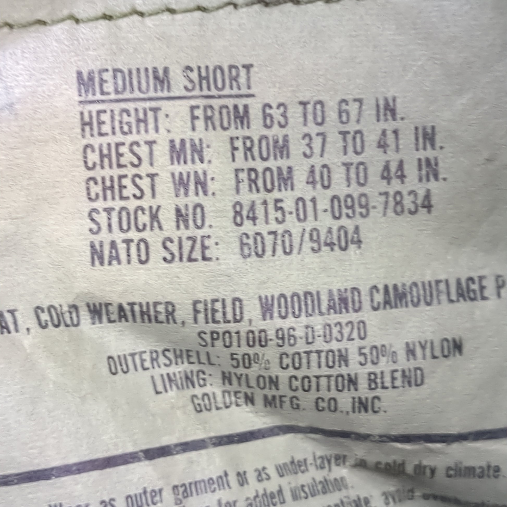 Vintage US Army BDU Woodland MEDIUM Short Cold Weather Field Jacket Excellent Condition (fa14-AUG240)